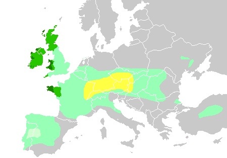 Key: The ancient (light green) and modern (dark green) Celtic provinces.